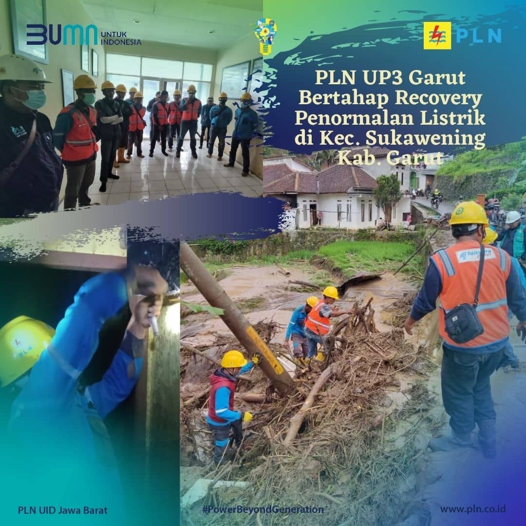 “alhamdulillah sebanyak 21 gardu listrik satu hari setelah banjir bandang petugas kami dari PLN ULP Cibatu berhasil memulihkan 21 gardu listrik yang padam meskipun dengan medan jalan yang cukup sulit tapi kami terus berkomitmen bagaimana caranya supaya pasokan listrik di Kecamatan Sukawening yang terdampak banjir bandang bisa menikmati pasokan listrik dari PLN sesuai slogan PLN “PANTANG PULANG SEBELUM TERANG” kata Nurman saat dihubungi via seluler pribadinya.