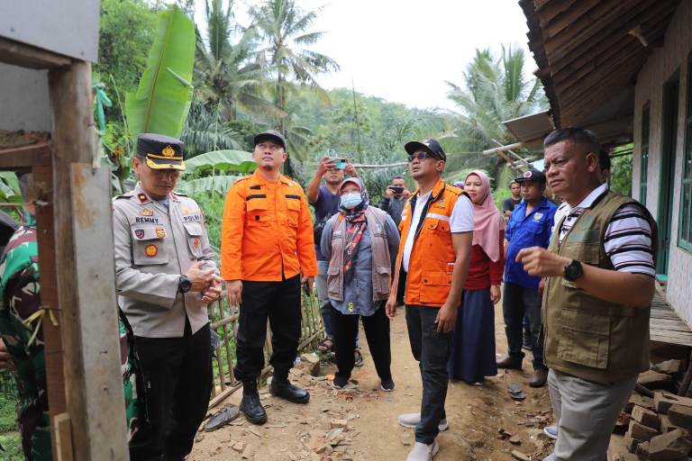KILASGARUTNEWS.id|Wakil Bupati Garut, dr. Helmi Budiman melakukan peninjauan secara langsung ke Kampung Lembur Tengah, Desa Putrajawa, Kecamatan Selaawi, Kabupaten Garut, pasca bencana gempa bumi yang terjadi di Kabupaten Garut, Sabtu kemarin.