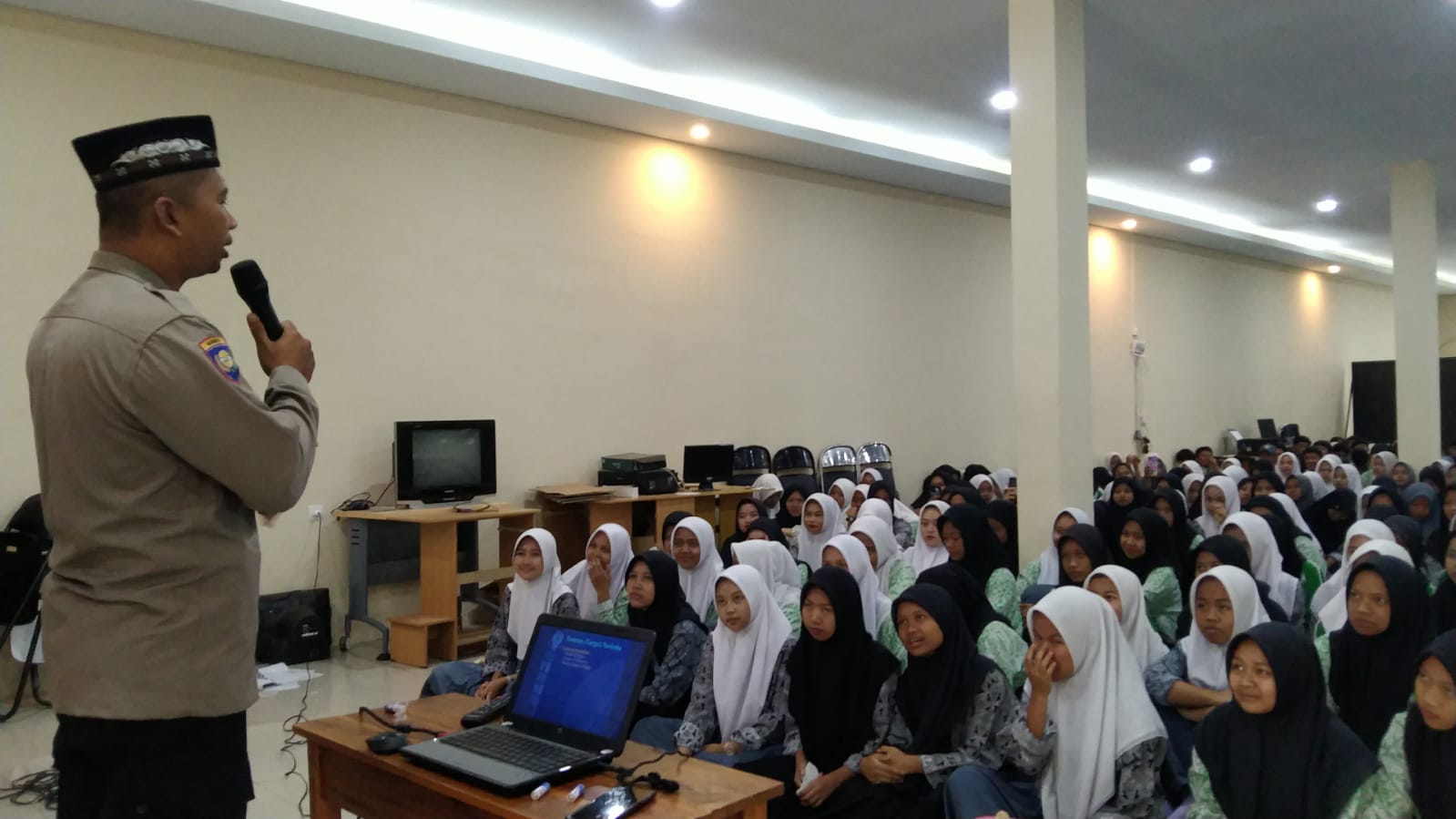 Kanit Bin Tibmas Sat Binmas Polres Garut Aipda Umar yang juga merupakan Da’i Kamtibmas Polri Polres Garut melaksanakan kunjungan kerja sekaligus berkesempatan menjadi nara sumber di SMK Bina Karya Mandiri Leles.