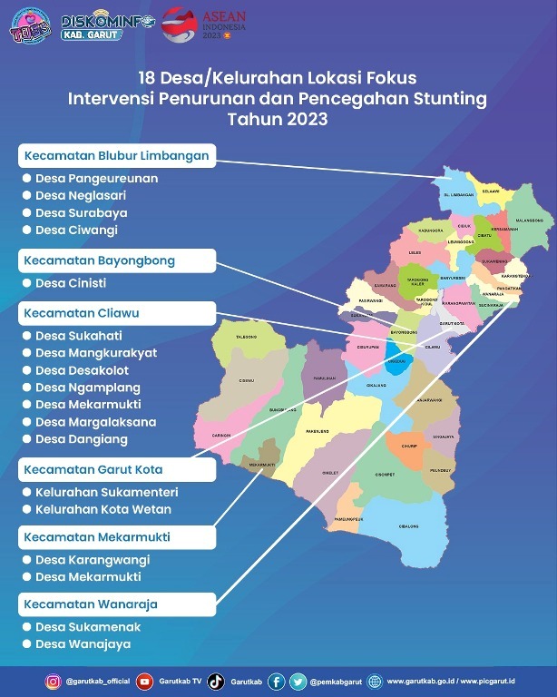 KILASGARUTNEWS.id|Pemerintah Kabupaten (Pemkab) Garut menetapkan 18 desa/kelurahan sebagai lokasi fokus (lokus) intervensi penurunan dan pencegahan stunting tahun 2023 di Kabupaten Garut.
