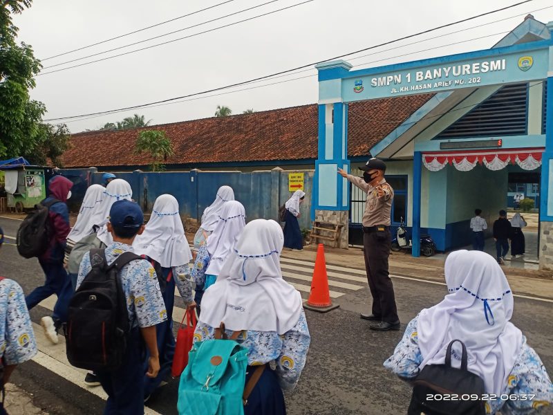 KILASGARUTNEWS | Kepolisian Sektor Banyuresmi melaksanakan kegiatan Pengaturan Jam Rawan Pagi yang bertempat di beberapa lokasi diantaranya Jalan KH. Hasan Arif dan SMP Negeri Banyuresmi Kabupaten Garut pada hari Kamis (22/09/2022) pukul 07.00 WIB sampai dengan selesai.