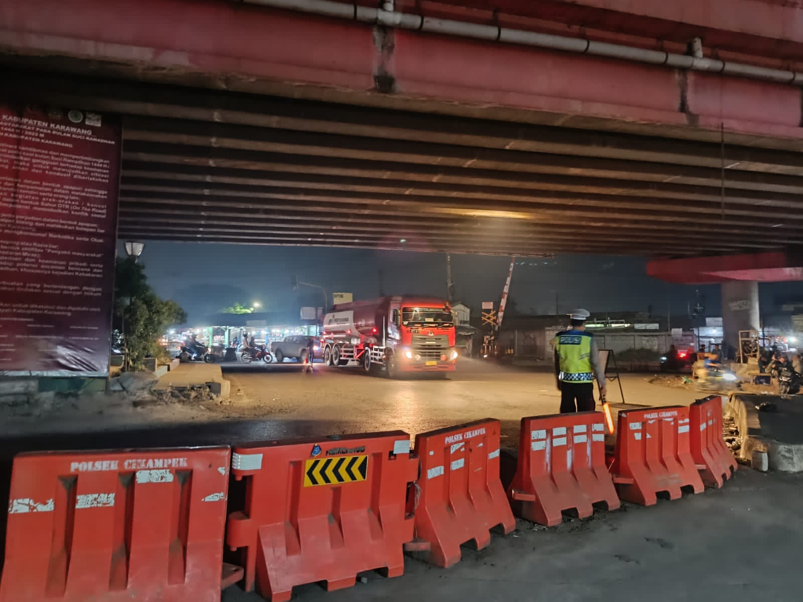 Kapolres Karawang AKBP Wirdhanto Hadicaksono melalui Kapolsek Cikampek Kompol Aries Riyanto S.Sos,MM,CHRA menjelaskan ” kegiatan personil Pos PAM Pos 3 Flyover Cikampek dalam rangka Ops Ketupat Lodaya 2023 guna memberikan pelayanan pengamanan arus balik lebaran sekaligus memberikan kelancaran arus lalin, situasi arus balik tengah malam dini hari ini lengang dan lancar serta kondusif ” Terang Kapolsek.(Deden Kurnia/Humas Polres Karawang*).