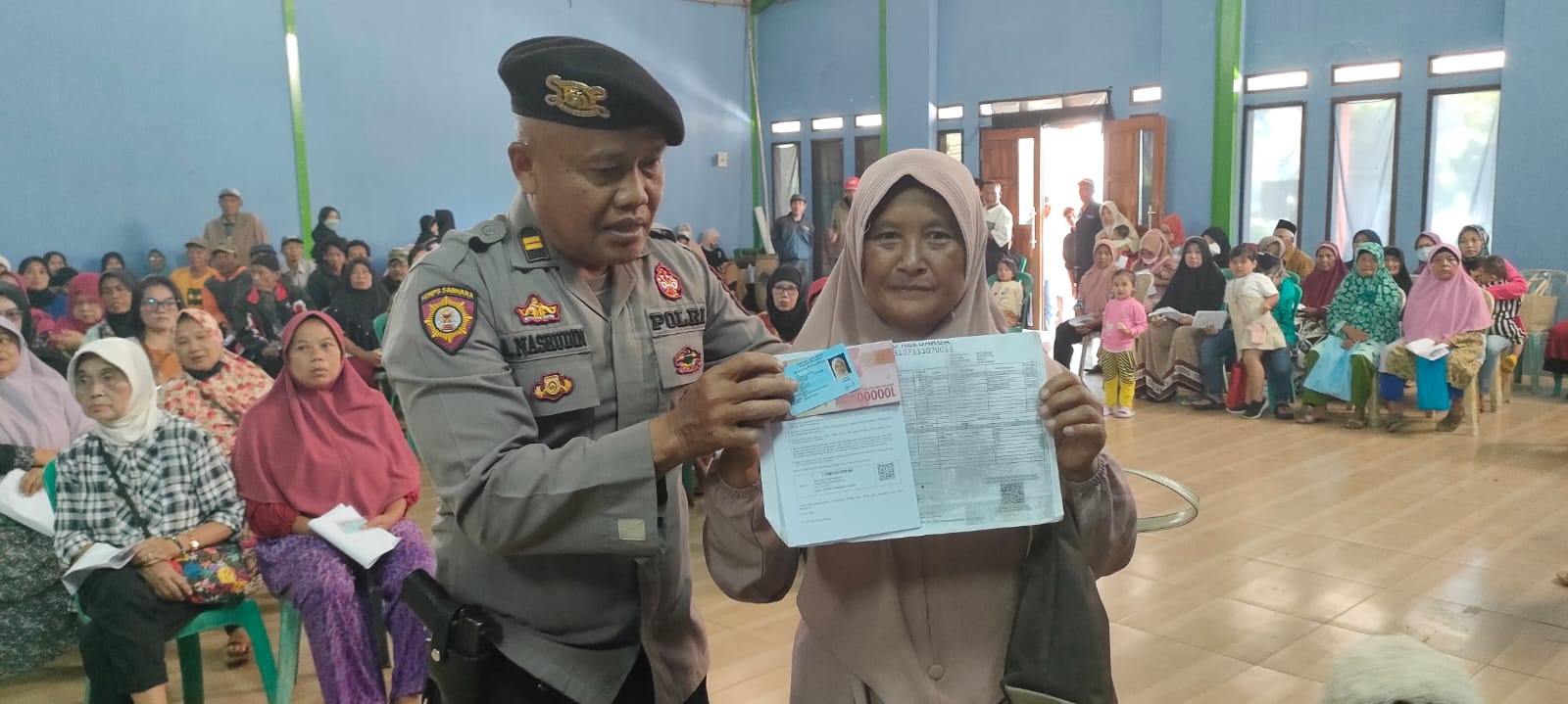 Kanit Samapta Polsek Kadungora Iptu Anas Nasrudin beserta anggota piket Polsek Kadungora mengamankan pembagian bantuan bagi 707 KPM warga Desa Neglasari dan 634 KPM warga Desa Cisaat Kecamatan Kadungora Kabupaten Garut.