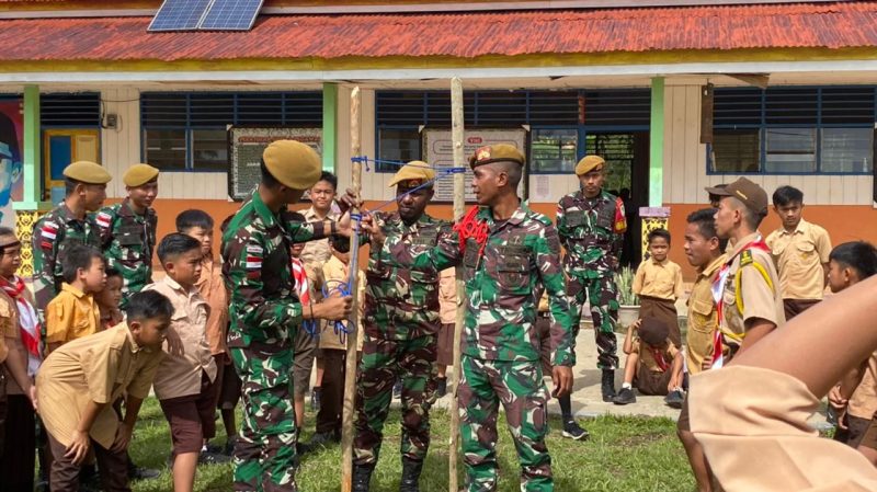 KILASGARUTNEWS.id|Dalam rangka memperingati Hari Baden Powell ke- 166 tahun 2023 yang jatuh pada tanggal 22 Februari, Satgas Pamtas Yonarmed 5/105 Tarik/PG Pos Gabma Long Midang memberikan pembinaan Pramuka kepada siswa/siswi SD dan SMP yang berada di perbatasan RI-Malaysia, bertempat di halaman SD Negeri 002 Krayan Long Midang Kec. Krayan Induk Kab. Nunukan.