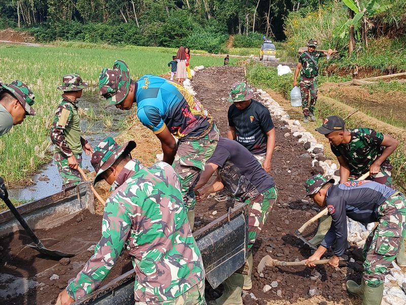 KILASGARUTNEWS.id|Sasaran fisik TMMD ke-120 Kodim 0611/Garut pengerasan jalan penghubung saat ini terus dikebut, personel Satgas TMMD setiap harinya terus bersemangat, pengerasan jalan di Kampung Pasir Pari dan hampir tembus ke Kampung Paku Haji.