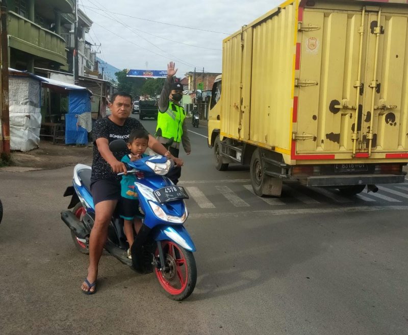 Kapolsek bersama jajaran Polsek Karangpawitan memberikan teguran lisan secara Humanis kepada para pengendara yang secara kasat mata melakukan pelanggaran lalu lintas.
