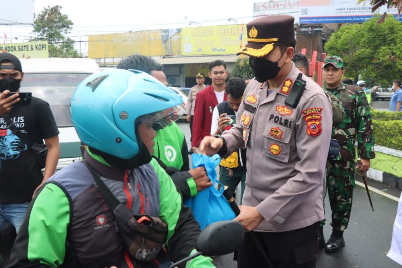 Kilas Garut News-Guna mengurangi beban hidup masyarakat yang terdampak penyesuaian harga BBM terkhusus bagi awak angkutan umum sopir angkot, ojek online dan nelayan, yang terdampak penyesuaian tarif angkutan, Polres Garut menebar kebaikan dengan memberikan bantuan sosial berupa ribuan paket sembako.