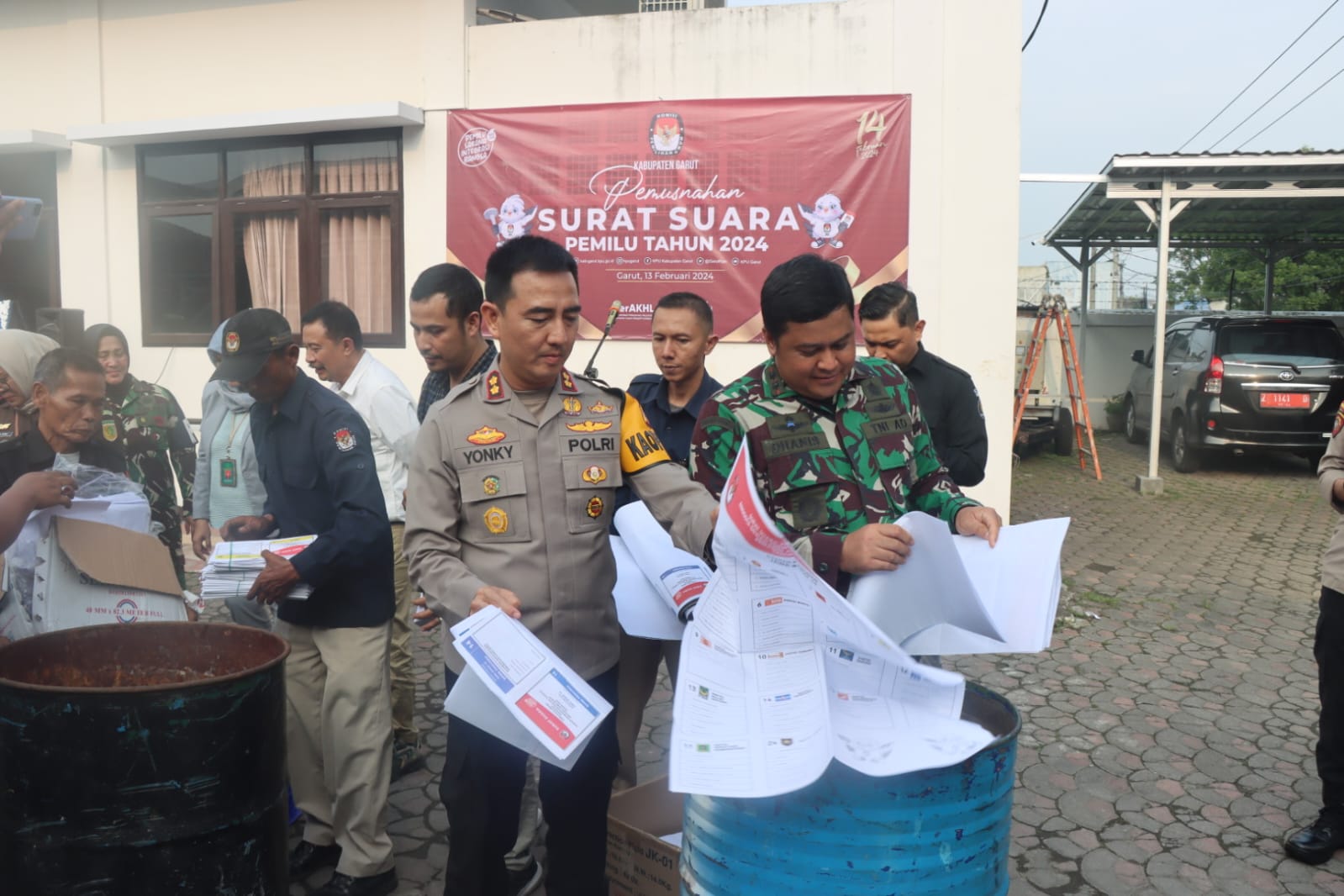 Kapolres garut bersama Kodim 0611/Grt lakukan pemusnahan surat suara rusak