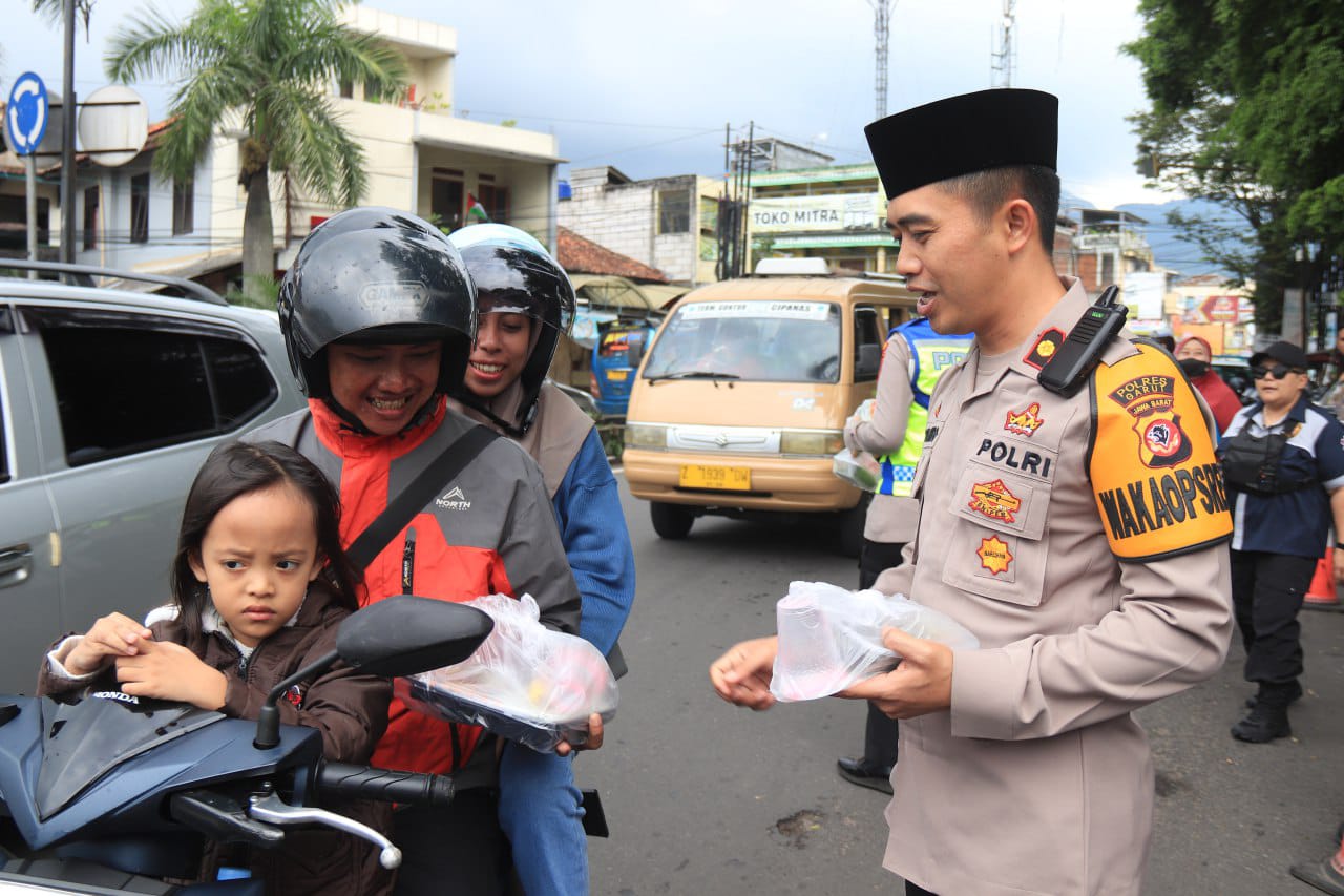 Selain membagikan makanan petugas juga memberikan himbauan tertib berlalu lintas. Hal ini dilakukan dalam rangka persiapan Operasi Keselamatan Lodaya 2024 yang akan berlangsung dari tanggal 4 sampai dengan 17 maret 2024.