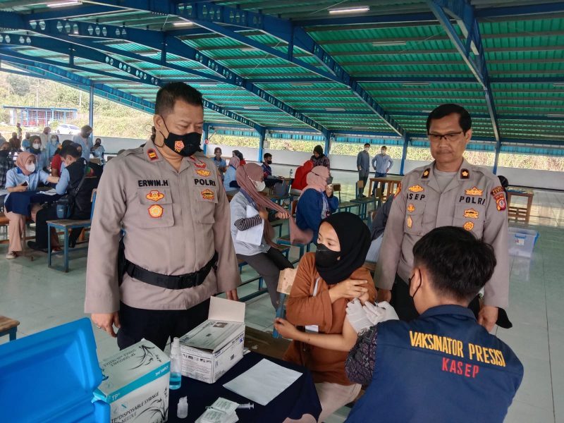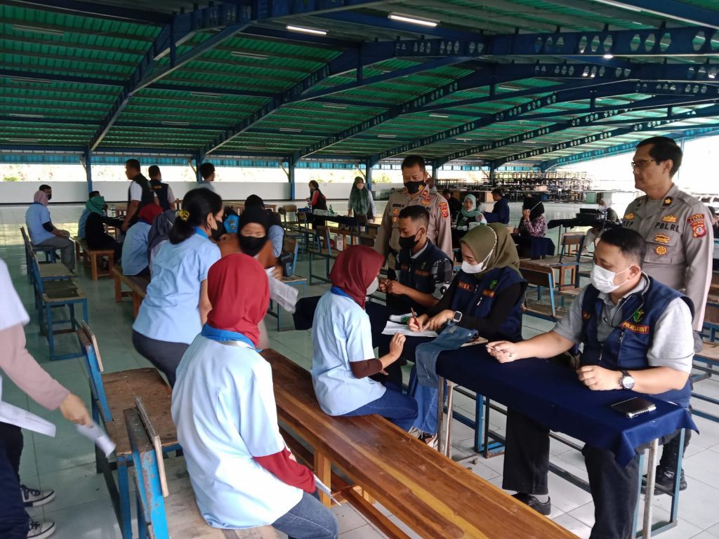 Kapolres Garut AKBP Wirdhanto Hadicaksono, S.I.K., M.Si melalui Kabagren Kompol Asep Dedi Sudrajat dan Kapolsek Leles Erwin Hermawan Bersama Kasie Dokkes Polres Garut Penata Tk I Aceng Ridwan. Skep., Nes dalam upaya berkontribusi untuk menekan perkembangan penyebaran virus Covid-19. Polres Garut melaksanakan Vaksinasi Booster bagi karyawan PT. Hoga yang terletak di jalan raya Leles-Garut wilayah Polsek Leles.