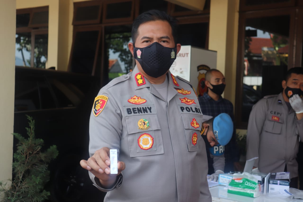 Sesuai arahan Kapolres Garut AKBP Adi Benny Cahyono, SH., S.I.K., M.Si Test Swab dilakukan sebelum pelaksanaan gelar operasional.