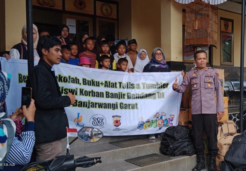Kilas Garut News-Polsek Banjarwangi Polres Garut yang dipimpin Kapolsek Iptu Amirudin Latif, S.H. bersama lintas komuniti Bandung memberikan bantuan berupa alat tulis.