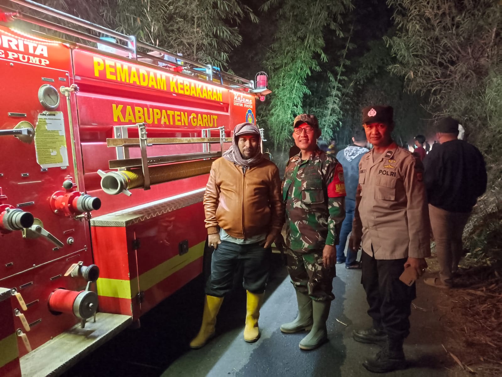 Kejadian kebakaran terjadi pada hari Kamis tanggal 12 Oktober 2023 sekitar pukul 20.00 WIB, menindaklanjuti peristiwa tersebut Polsubsektor Cigedug Polsek Bayongbong berkoordinasi dengan Unit Damkar Cikajang untuk membantu padamkan api.