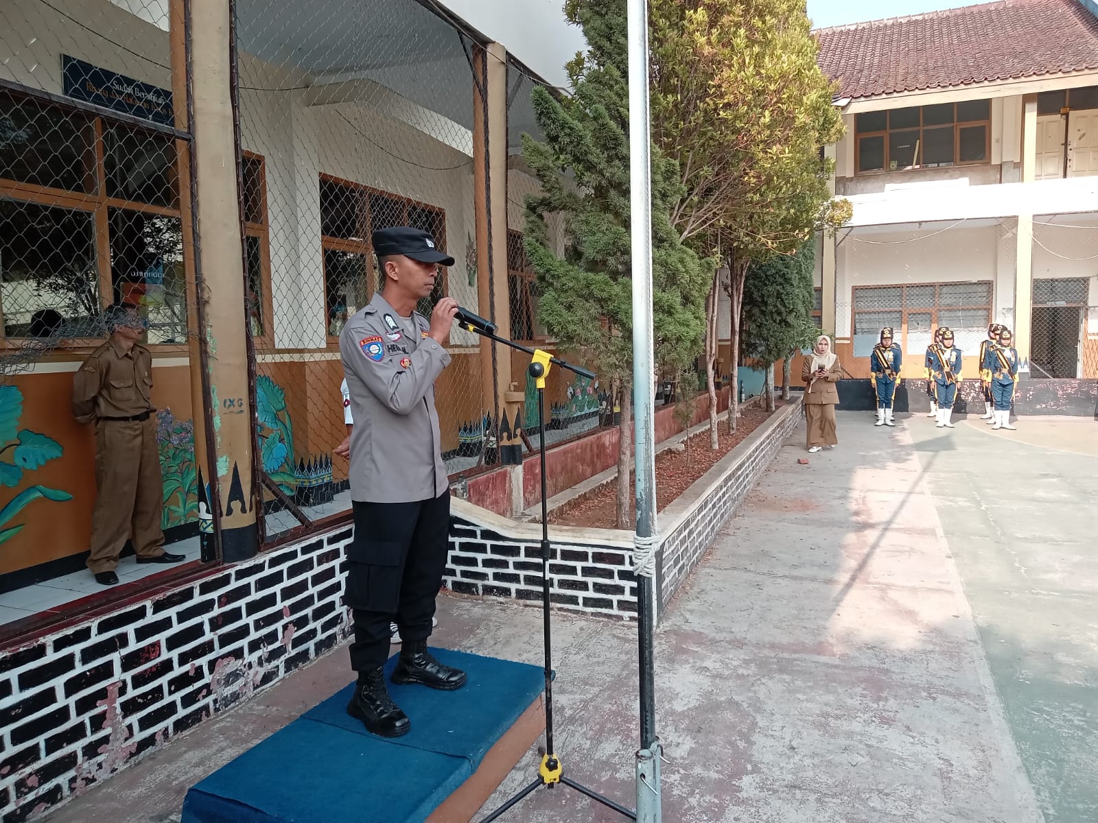 Upacara tersebut turut dihadiri oleh Kepala Sekolah SMK Mekarmukti, Para Guru, Staf dan siswa-siswi SMPN 1 Bayongbong Kecamatan Bayongbong Kabupaten Garut.