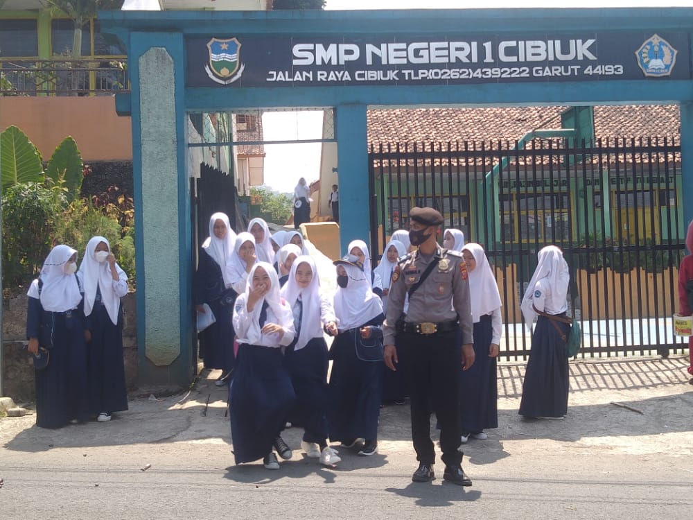 Kapolsek Cibiuk Iptu Gopar Suryadi Mulya mengatakan, giat Kamseltibcarlantas jam Rawan Siang Anggota Samapta Brigadir Ridwan Nurohim di SMPN 1 Cibiuk dengan menyebrangkan siswa-siswi sewaktu bubaran jam sekolah.