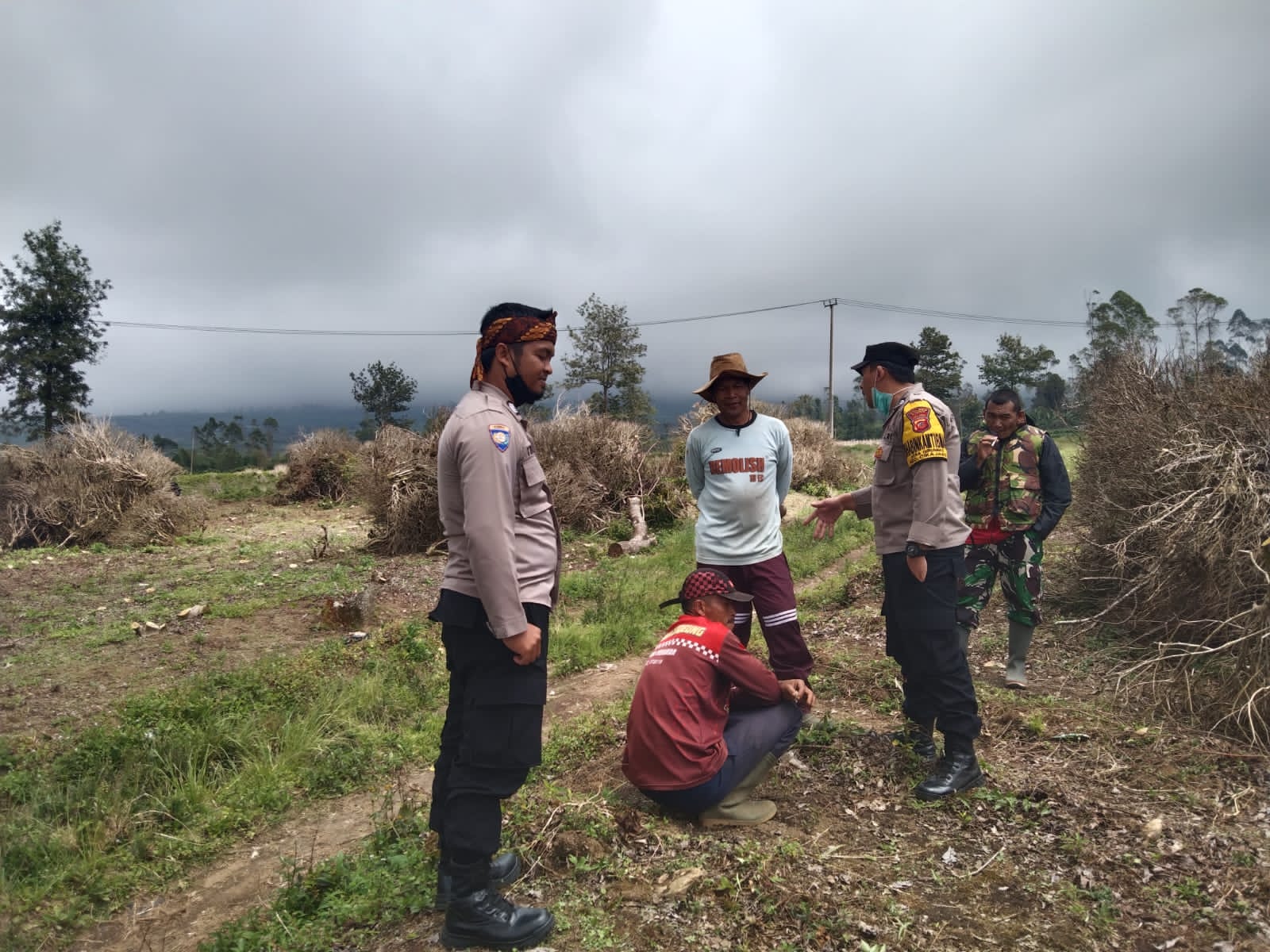 Kapolsek Cikajang AKP Adnan M, S.H. melaporkan, di lapangan masyarakat yang sering melakukan pengrusakan dihari ini tidak ada aktifitas kegiatan pembabatan. (Humas Polres Garut Jabar/Deden Kurnia).