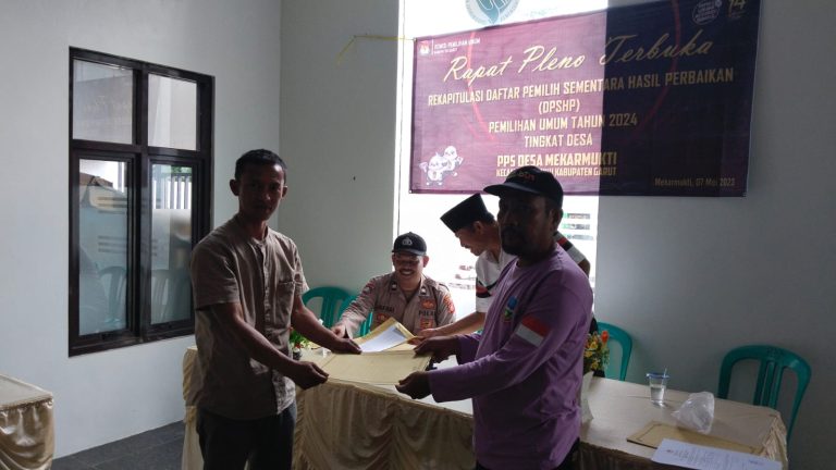 KILASGARUTNEWS.id|Polsek Cilawu Polres Garut Polda Jabar melaksanakan giat pengamanan dan monitoring rapat pleno terbuka rekapitulasi Daftar Pemilih Sementara Hasil Perbaikan (DPSHP) tingkat Desa Mekarmukti pada pemilu 2024.
