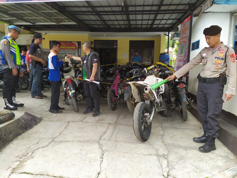 Polsek Cisurupan melakukan penindakan kepada 12 unit kendaraan roda dua yang memakai knalpot bising dan tidak dilengkapi surat-surat atau dokumen yang sah dalam berkendara.