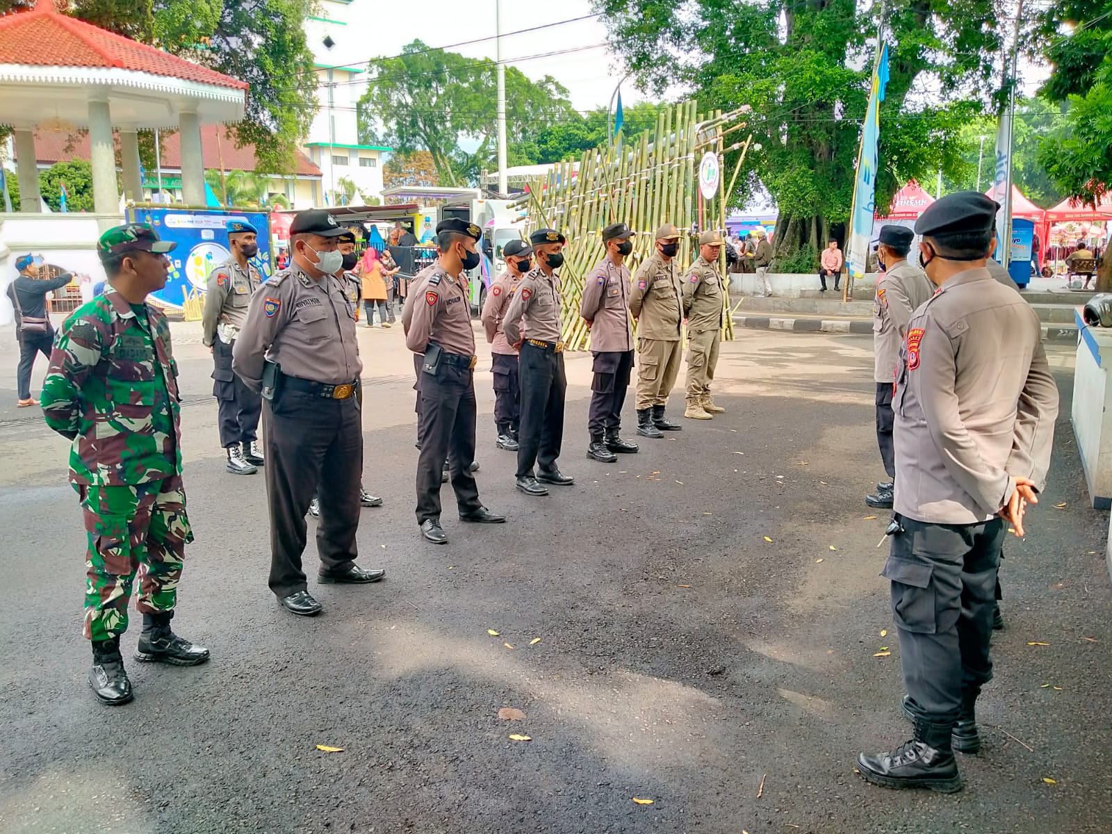 Kapolres Garut AKBP Wirdhanto Hadicaksono , S.Ik , M.Si., melalui Kapolsek Garut Kota menggelar kegiatan apel kesiapsiagaan pengamanan pembukan Garut Festival di Halaman Pendopo Kab.Garut.