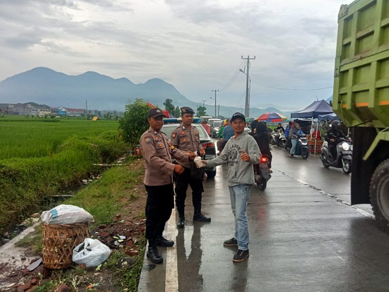 Selain mengadakan patroli ngabuburit dalam menjaga keamanan warga yang sedang menunggu buka puasa, Kapolsek Leles AKP Agus Kustanto, SH juga membagikan Takjil Gratis kepada pengguna Jalan.