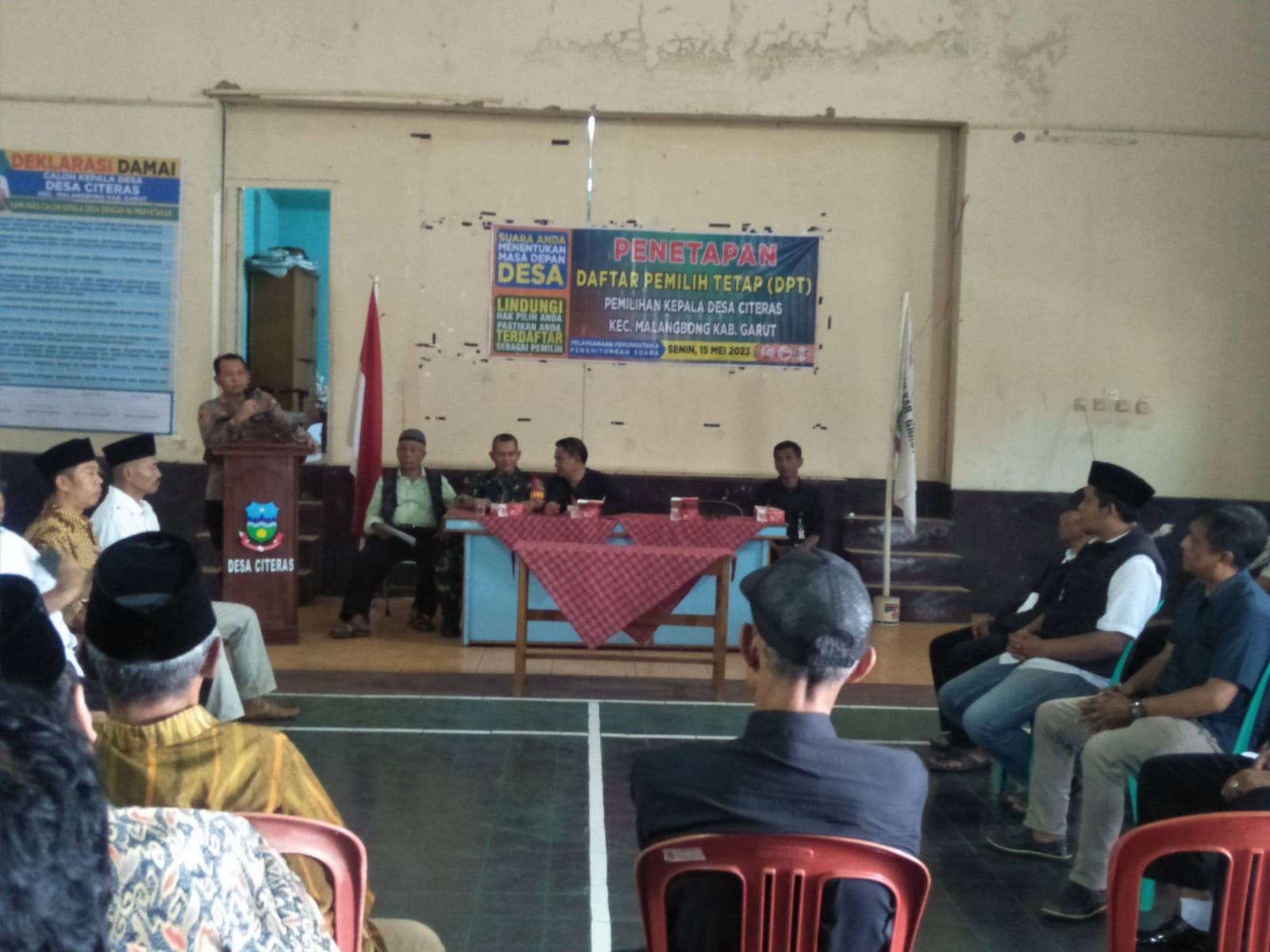 KILASGARUTNEWS.id|Polsek Malangbong Polres Garut menghadiri kegiatan Pembinaan Calon Kepala Desa dan Deklarasi Damai Pilkades, Kamis (4/5/23) pukul 1 siang.