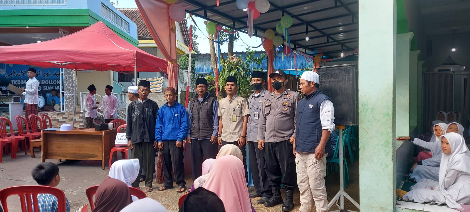 ” Diwakili Bripka Cecep Chandra menghadiri acara rangkaian peringatan Tahun Baru Islam di Ponpes Nurul Huda yang diisi dengan Khitanan Massal dan Santunan Anak Yatim.”, ungkap AKP Zaenuri.
