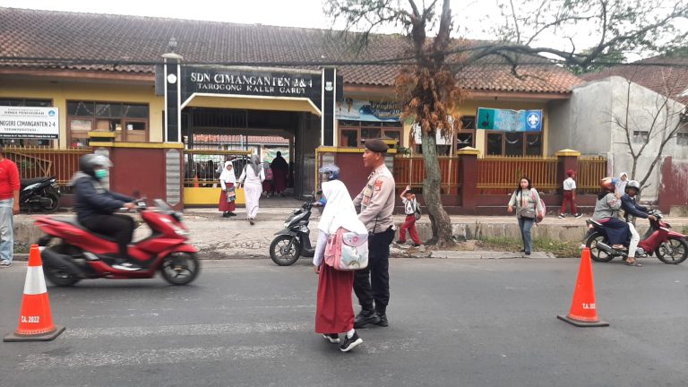 Polsek Tarogong Kaler Polres Garut Bantu Sebrangkan Anak Sekolah