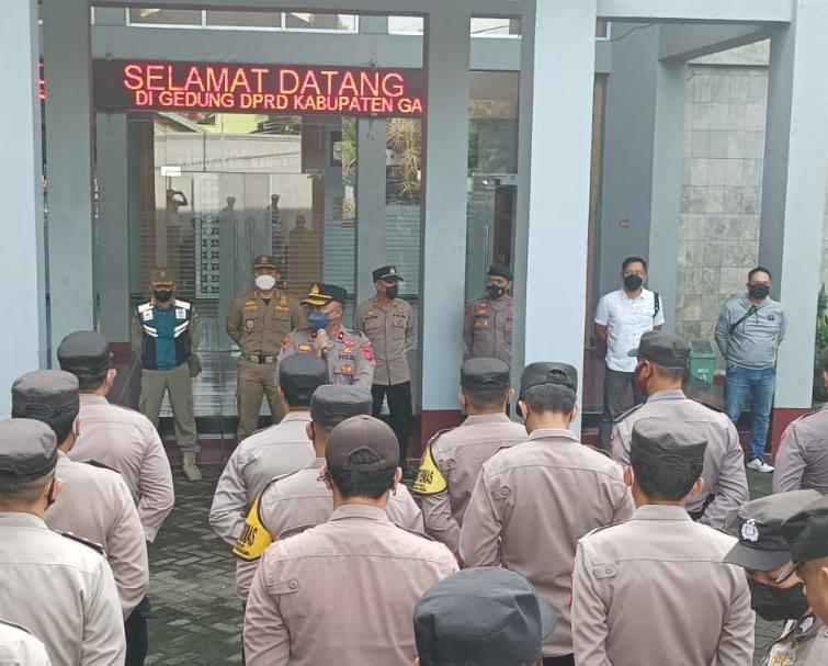 “Laksanakan kegiatan pengamanan ini dengan penuh rasa tanggung jawab jangan sampai terpancing terhadap teriakan-teriakan atau sorakan-sorakan dari massa aksi, tetap waspada dan hati-hati, satu sama lain saling mengawasi” tegasnya.