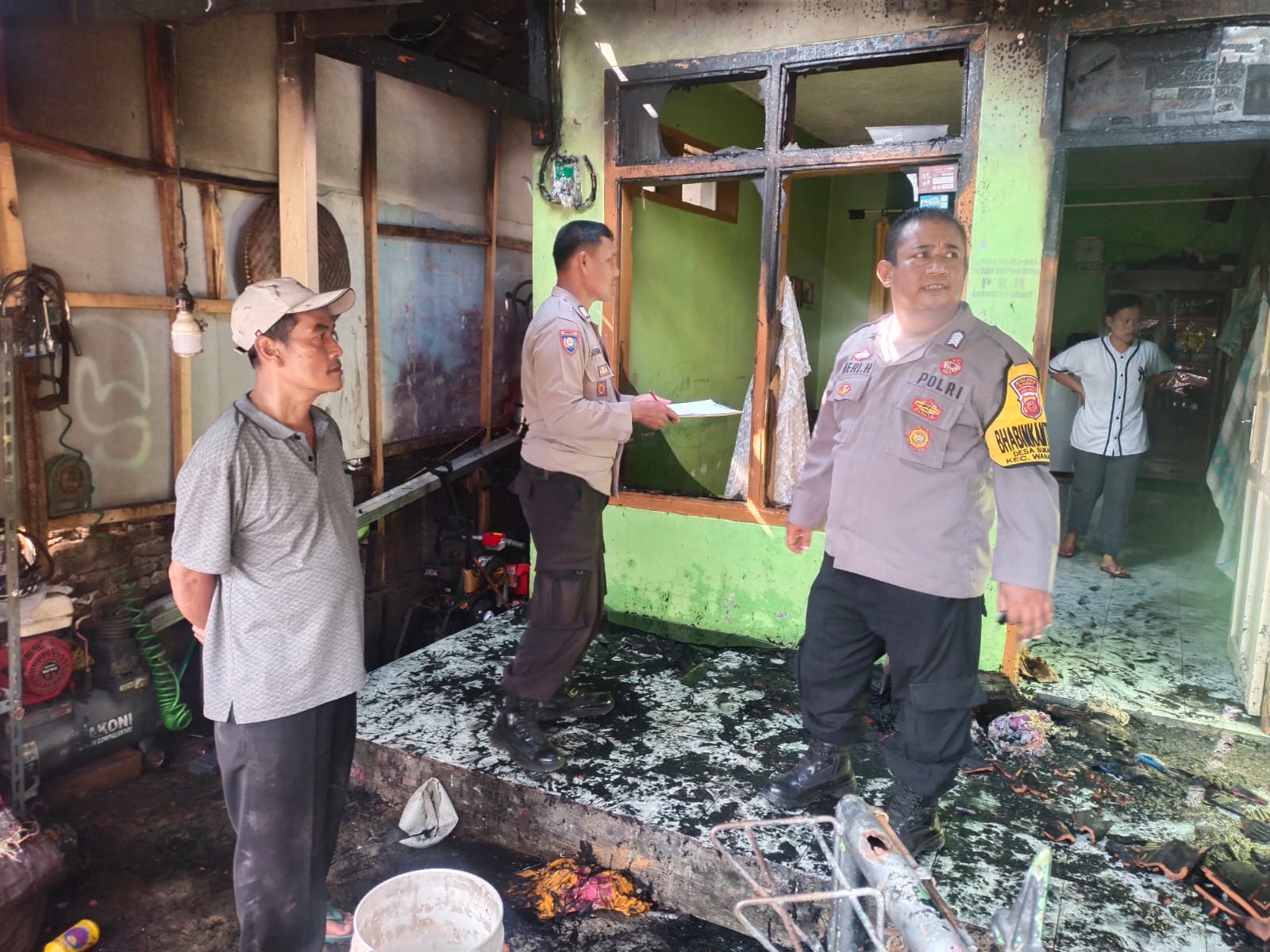 KILASGARUTNEWS.id|Personil Polsek Wanaraja mengecek peristiwa kebakaran rumah di desa Wanasari, Kamis siang sekitar pukul 13.00 Wib 25 Mei 2023.