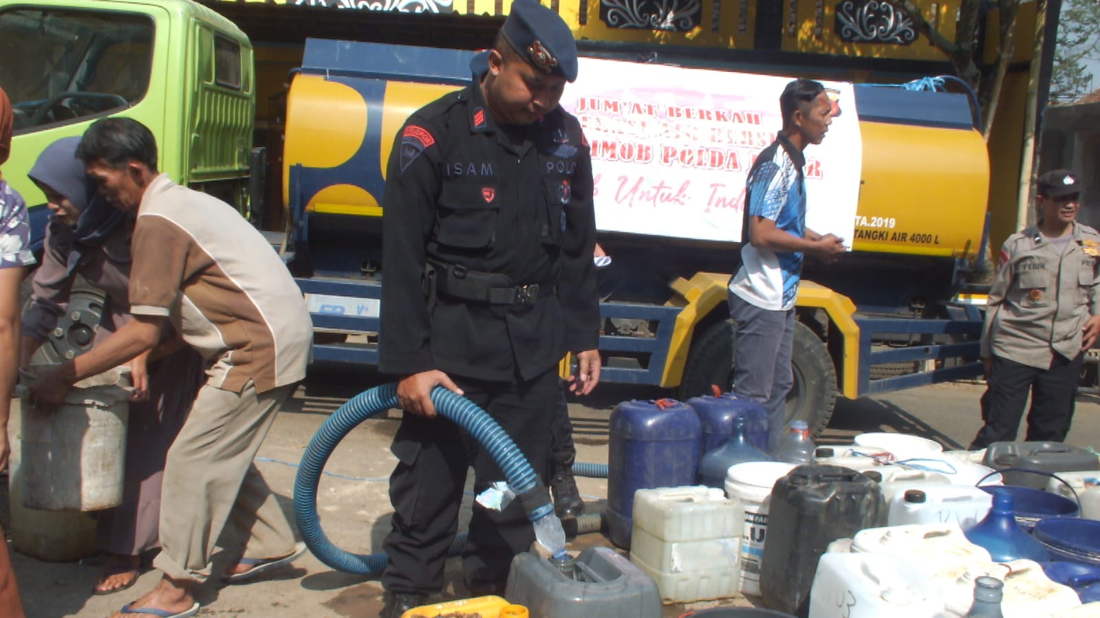 Berangkat dari hal itu, Anggota Kompi 1 Batalyon D Pelopor Sat Brimob Polda Jawa Barat yang dipimpin langsung Danki 1 Batalyon Akp Ahmad Hidayat, menyalurkan air bersih untuk masyarakat dengan program Jumat Berkah Operasi Air Bersih bagi masyarakat. Jumat (08 September 2023) siang.