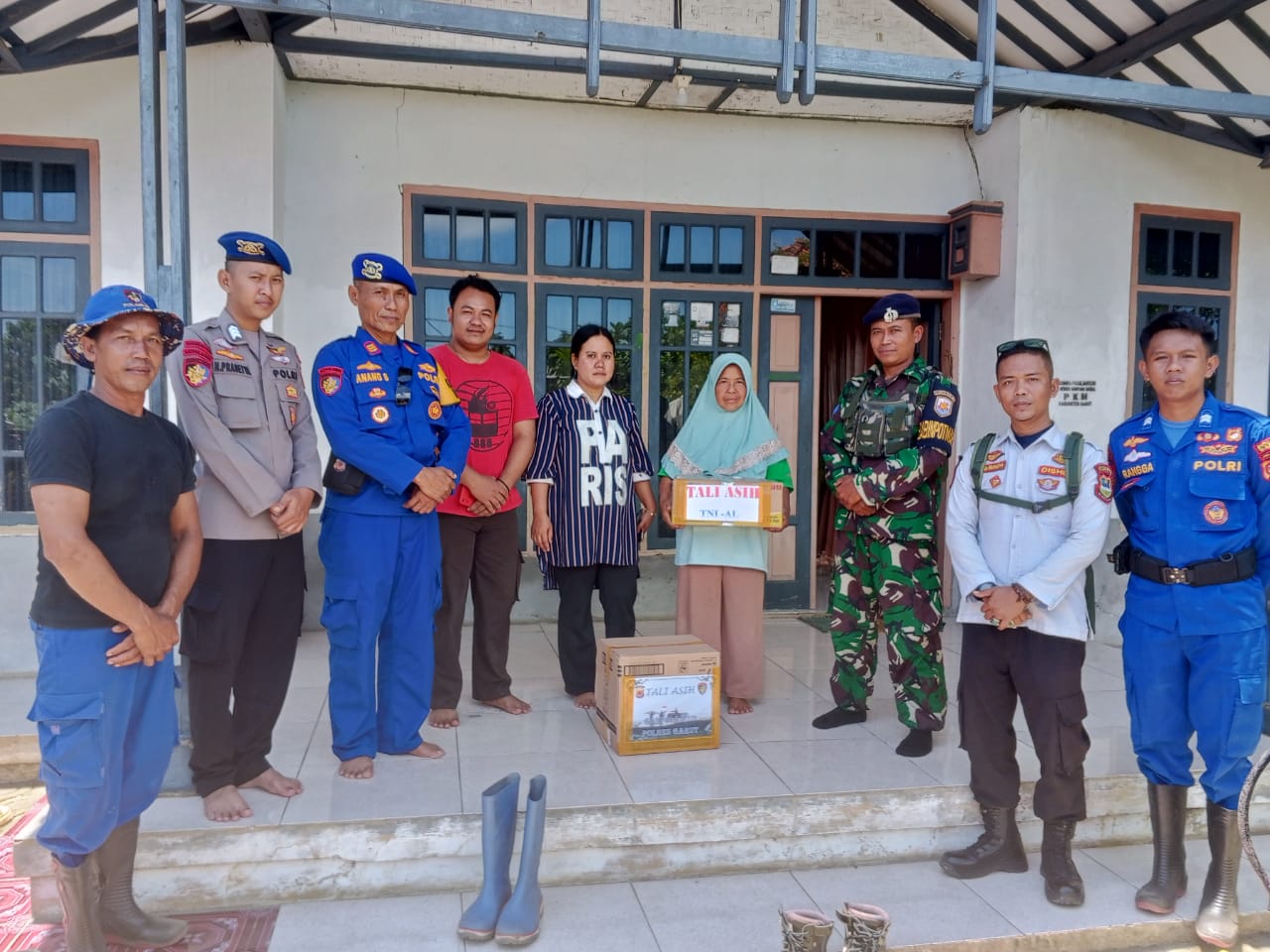 Terlihat Kasat Polairud Polres Garut bersama instansi terkait lainnya memberikan bantuan berupa tali asih berbentuk sembako dan santunan kepada keluarga nelayan hilang tersebut.