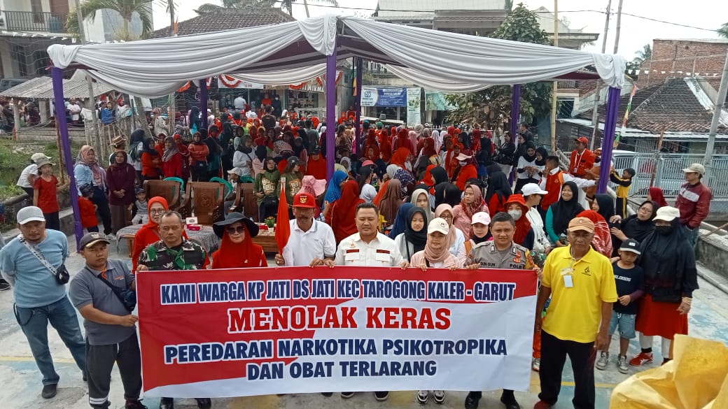 KILASGARUTNEWS.id|Masyarakat di Desa Jati Kecamatan Tarogong Kaler Garut bersama bersama dengan Sat Narkoba Polres Garut menggelar deklarasi Anti Penolakan Peredaran Narkotika, Psikotropika dan Obat Terlarang. Minggu (27/8/2023).