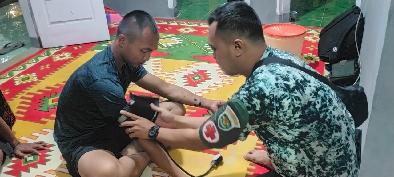 ” Kita cek kesehatan masyarakat, mulai dari Bapak -bapaknya yang sedang membantu kita, juga ibu-ibunya juga yang berada di sekitar lokasi kegiatan TMMD.”,ungkap Peltu Rohmat.