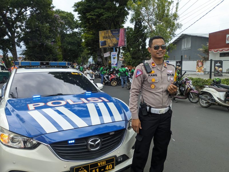 KILASGARUTNEWS.id|Polres Garut, Satuan Lalu Lintas (Sat Lantas) yang dipimpin oleh Kasat Lantas Polres Garut, Iptu Aang Andi Suhandi, SAP, melakukan pengawalan, pengamanan, dan pengaturan arus lalu lintas pada aksi damai yang diikuti oleh ribuan ojek online ‘Garut Bersatu’, yang berlangsung pada Senin (27 November 2023).