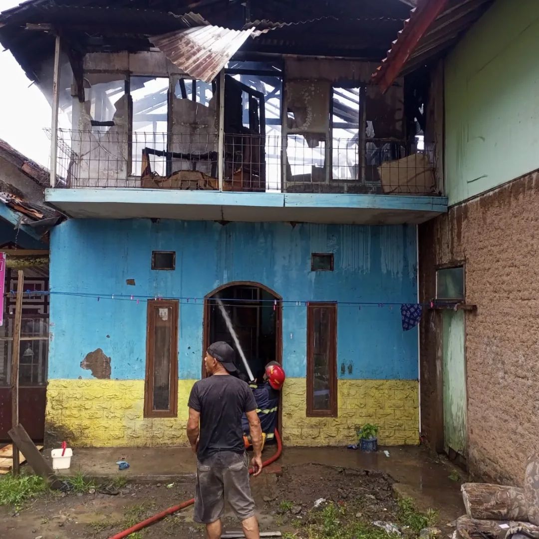Adapun penyebab terjadinya kebakaran diduga sementara dari kompor gas yang menyala dan merambat ke bahan bangunan yang mudah terbakar.