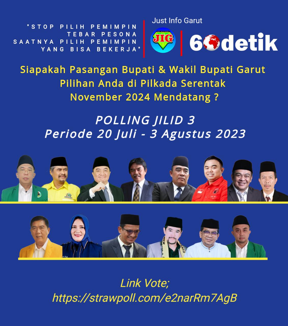 KILASGARUTNEWS.id|Polling Penjaringan Bakal Calon Bupati dan Wakil Bupati Garut Periode 2024 – 2029 Kembali Digelar oleh Media Sosial Just Info Garut (JIG).