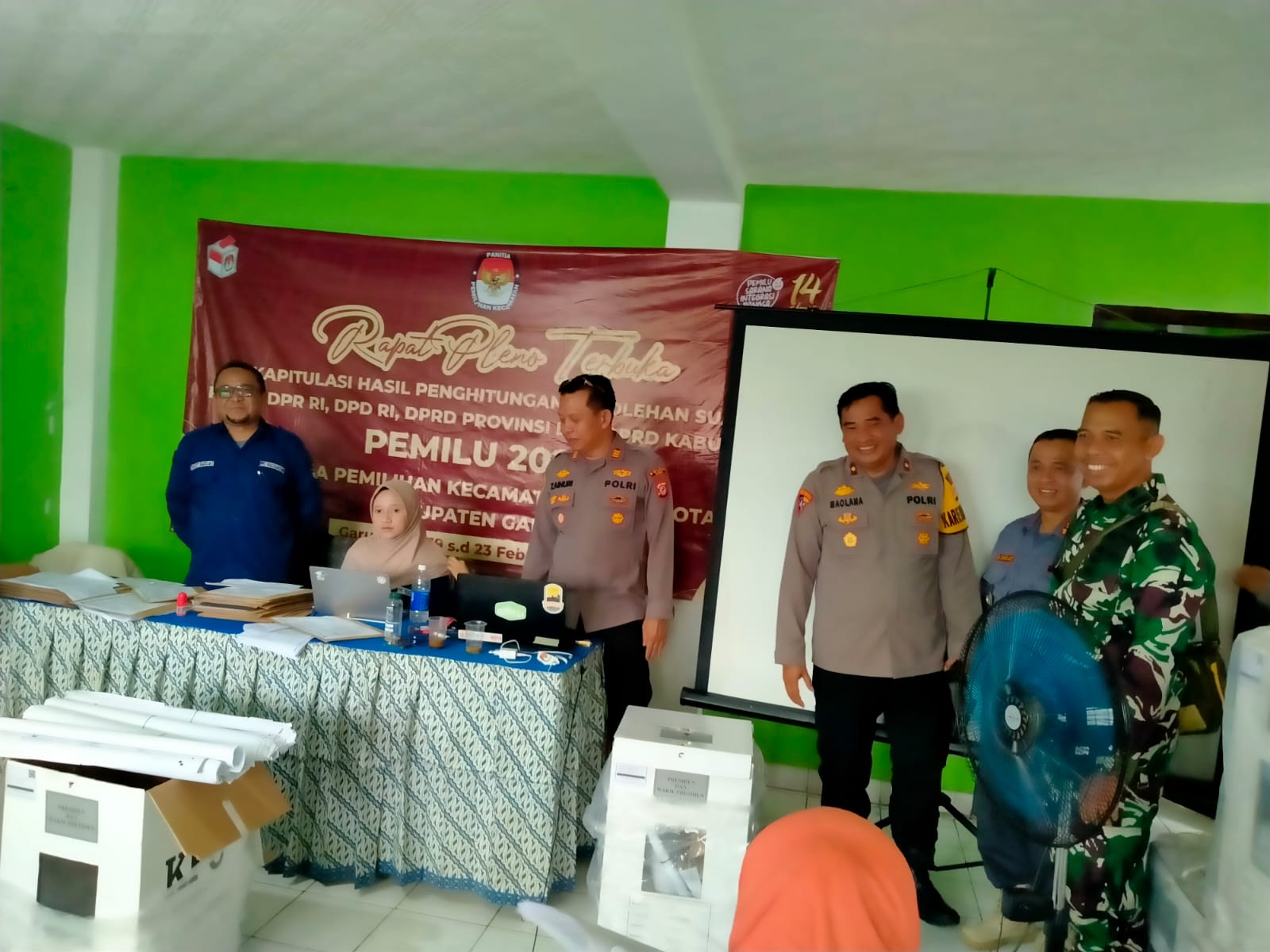 Seperti halnya Polsek Garut Kota yang bersinergitas dengan Koramil 1101/GK melakukan monitoring/pengawasan kegiatan Rapat Pleno tingkat Kecamatan Garut Kota (PPK) di Gedung PGRI Jl. Sudirman Kel. Kota Kulon Kec. Garut Kota Kab. Garut. Selasa (20/02/2024).