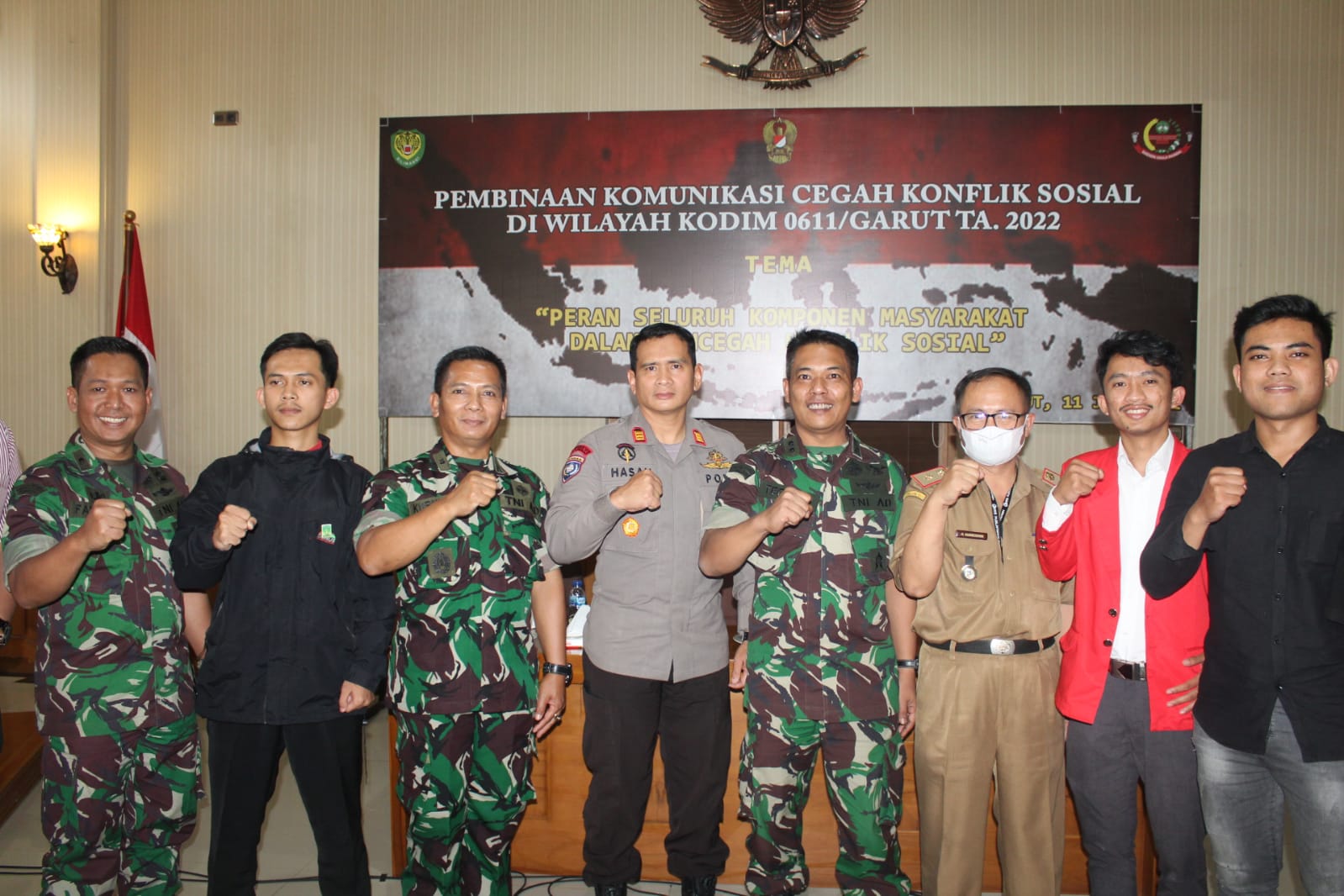 Kegiatan tersebut dilaksanakan di Aula Bakorwil Kabupaten Garut, Dengan tema “ Sinergitas komponen masyarakat dalam mencegah konflik sosial dilingkungan Kodim 0611/Garut”.