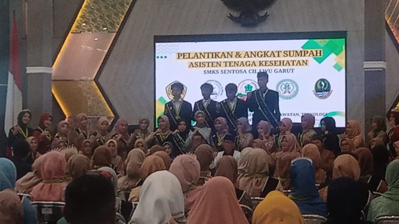 KILASGARUTNEWS.id|Sekolah Menengah Kejuruan Swasta (SMKS)Sentosa Cilawu Garut telah mengadakan pelantikan dan angkat sumpah asisten tenaga kesehatan diwarnai Isak tangis haru dalam sungkeman siswa/i kepada orangtua dan guru -guru yang bertempat di gedung pendopo Garut, Jawa barat. Rabu (20/6/2023).