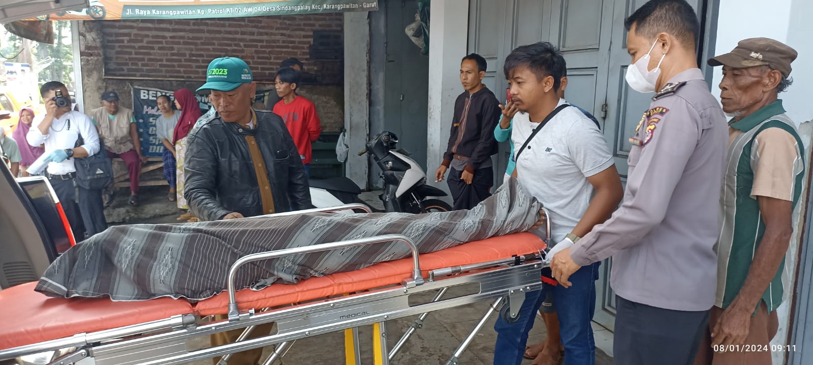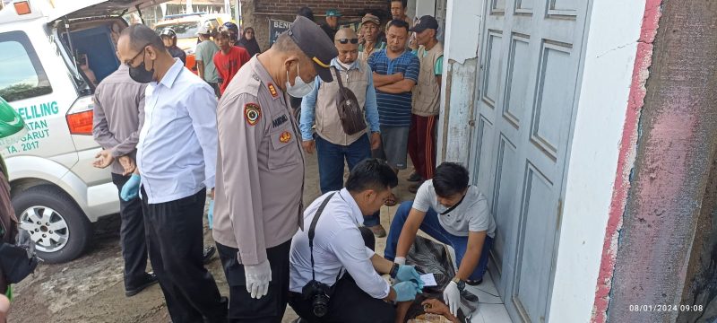 Anggota Polsek Karangpawitan Polres Garut menindaklanjuti informasi dari masyarakat tentang adanya sosok laki-laki tanpa identitas yang tergeletak di depan teras salah satu ruko di Jl. Raya Wanaraja – Karangpawitan yang diduga meninggal dunia.
