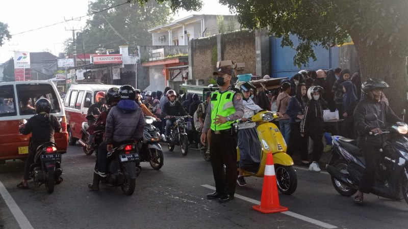 Polsek Karangpawitan, Polres Garut, bersama jajaran melaksanakan giat Strong Point rawan pagi di beberapa titik kemacetan yang ada di Wilayah Hukum Polsek Karangpawitan Polres Garut.