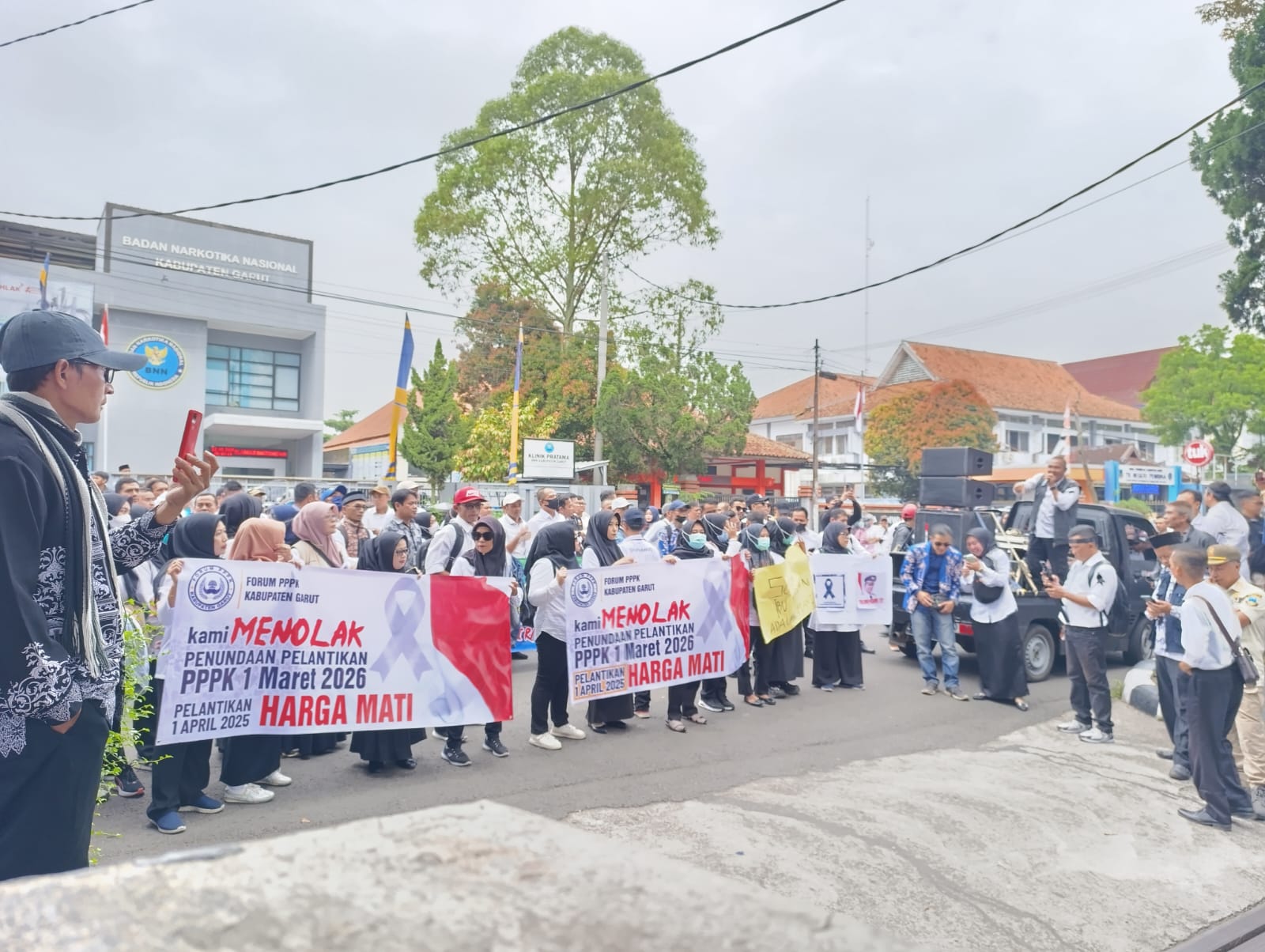 KILASGARUTNEWS.id|Forum Pegawai Pemerintah dengan Perjanjian Kerja (PPPK) Kabupaten Garut menggelar aksi damai menolak penundaan pelantikan PPPK hingga 1 Maret 2026.…