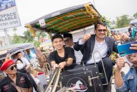 KILASGARUTNEWS.id|Pasangan calon (paslon) Bupati dan wakil bupati dr helmi budiman dan H Yudi lasminingrat naik delman dan angkot saat menghadiri acara pengundian no urut…