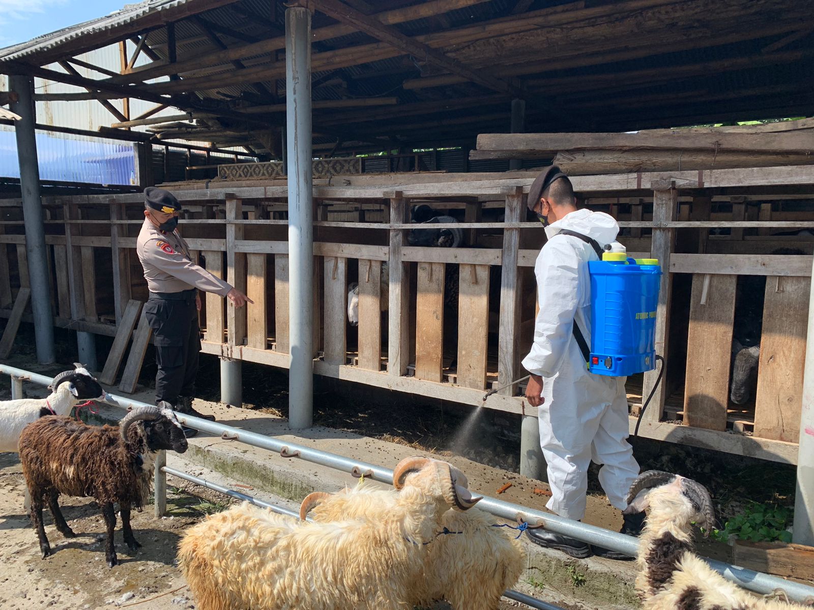 Kilas Garut News-Unit Pam Obvit Sabhara Polres Garut melakukan penyemprotan disinfektan pada hewan ternak berikut kandangnya dalam upaya mengantisipasi penyebaran…