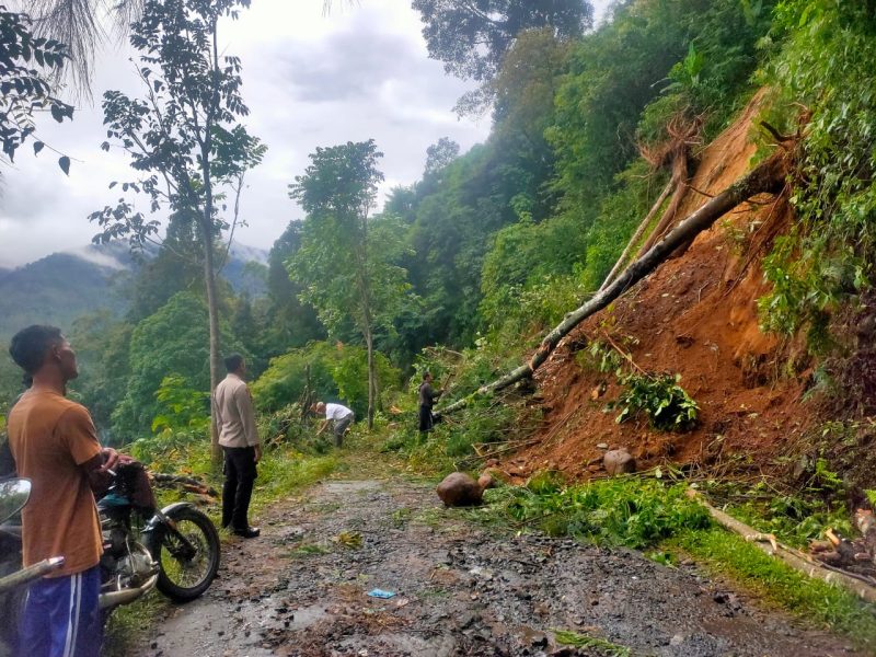 Kemudian material longsor dibersihkan dengan menggunakan alat berat dari Dinas PUPR dengan bantuan dari berbagai pihak dan masyarakat sekitar agar akses jalan dapat digunakan kembali.