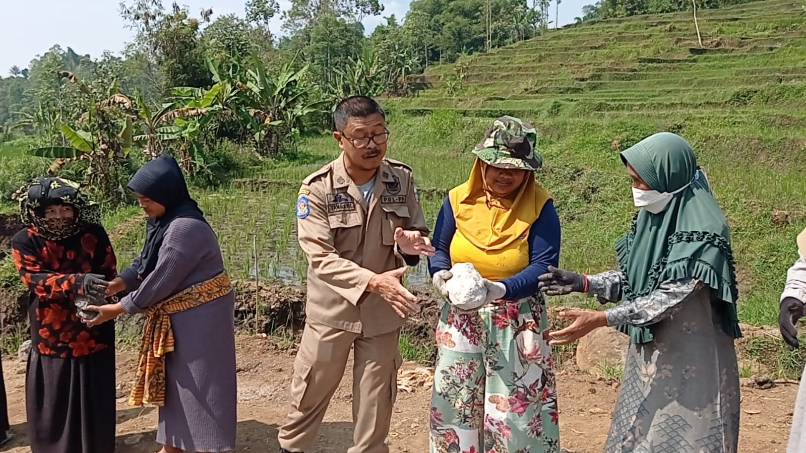 KILASGARUTNEWS.id|Kasi Trantib Kecamatan Sukaresmi, Garut, Tamhadi turun langsung membantu para personel Satgas di lokasi pembangunan jalan TMMD ke-120 Kodim 0611/Garut, Kamis (23/5/2024).