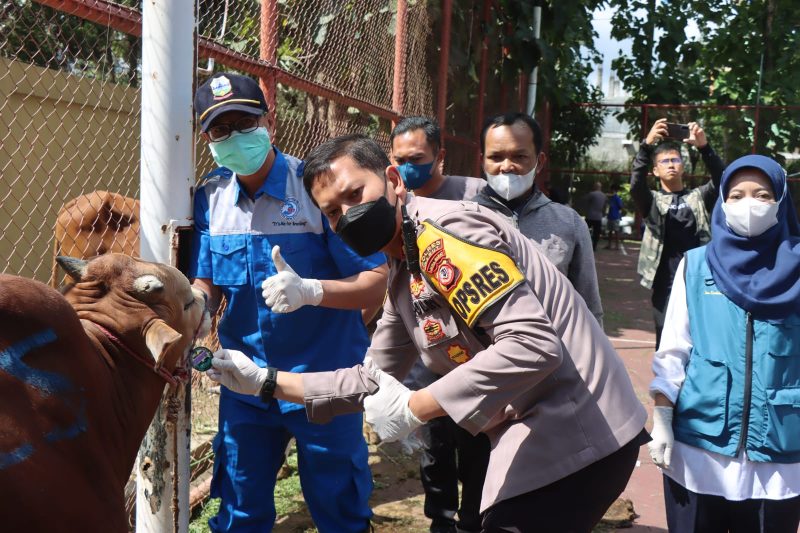 Kegiatan tersebut dilaksanakan dalam rangka Kurban Idul Adha 1443 H Polres Garut dengan tema Berkurban Barokah bebas dari PMK menuju Garut yang Sejahtera.