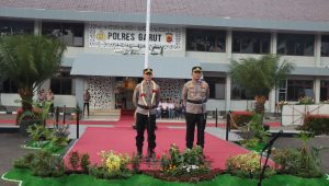 Setelah penyambutan Kapolres Garut disambut hangat oleh Kapolres Garut terdahulu AKBP Rio Wahyu Anggoro , S.H., S.Ik., untuk melaksanakan upacara wellcome dan farewell parade di lapangan upacara Mapolres Garut.