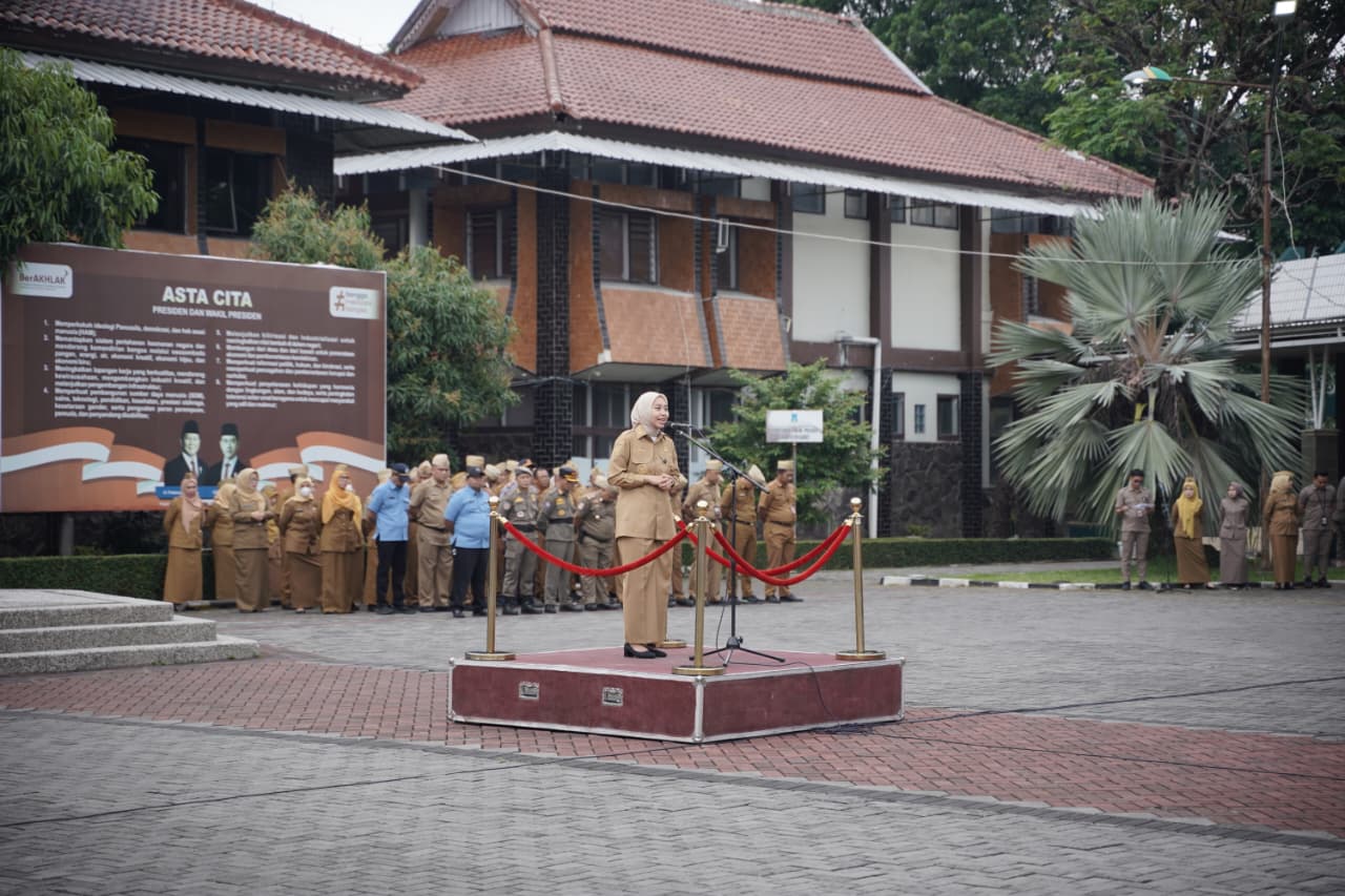 KILASGARUTNEWS.id|Wakil Bupati Garut, Putri Karlina, memimpin apel gabungan di Lapangan Sekretariat Daerah Kabupaten Garut, Jalan Pembangunan, Kecamatan Tarogong Kidul, pada Senin (12/11/2025).
