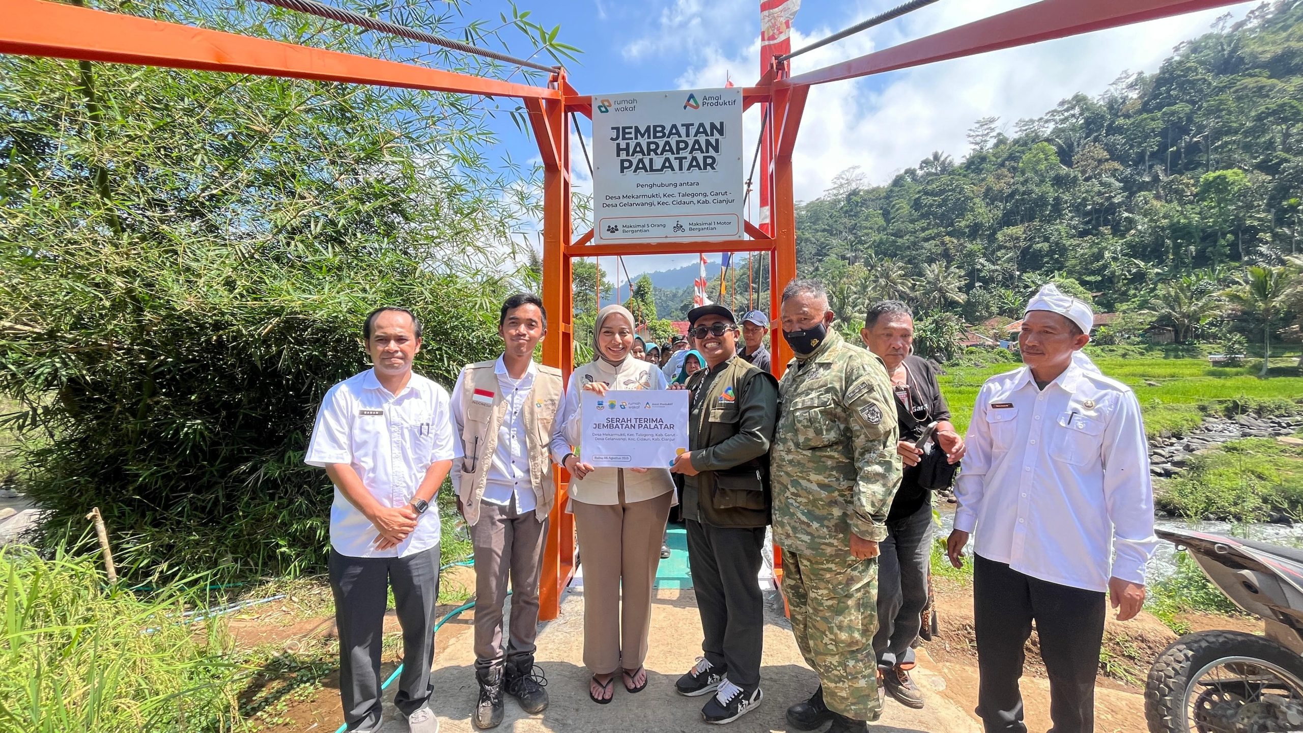 Wakil Bupati Garut, Putri Karlina, menyampaikan rasa terima kasih kepada Rumah Wakaf dan Amal Produktif atas kontribusi mereka dalam pembangunan jembatan ini.